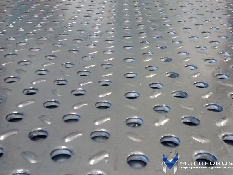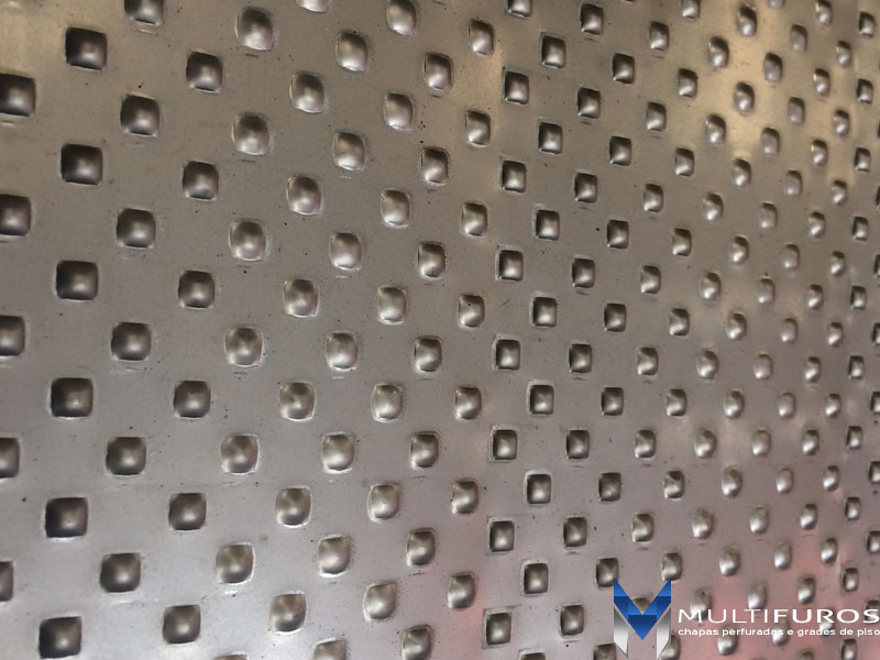 Temos diversos tipos de recalques como: quadrados, losangulares e oblongos em diversas medidas, podendo ser feito em varias espessuras dependendo da aplicação. Podendo em algumas destas Chapas Recalcadas fazer diversos tipos de furos.