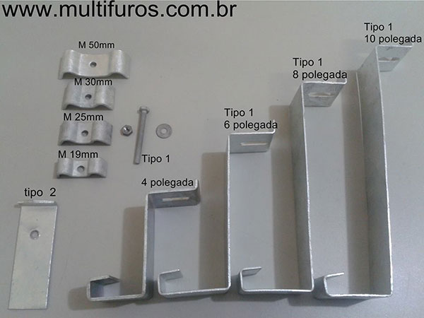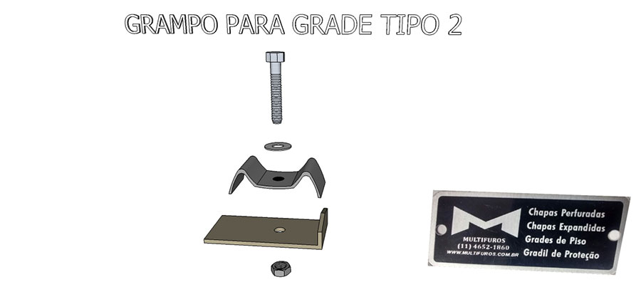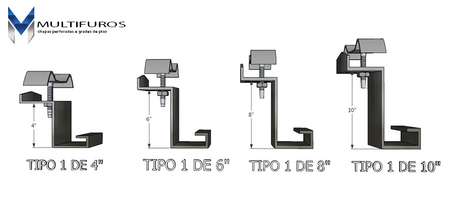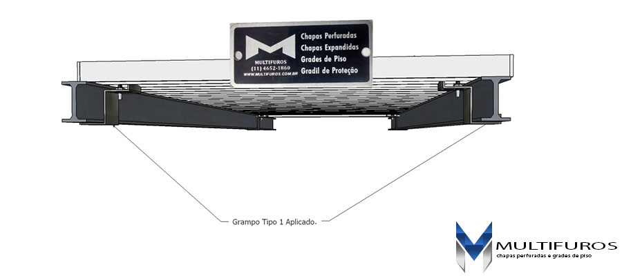 Existem dois modelos padrões sendo o de Tipo 1 e Tipo 2, onde o Grampo de Fixação Tipo 1 é utilizado em grades onde permite-se o envolvimento do grampo na viga de apoio.