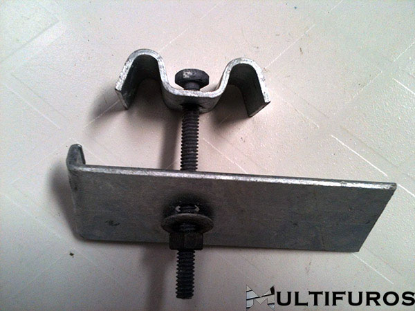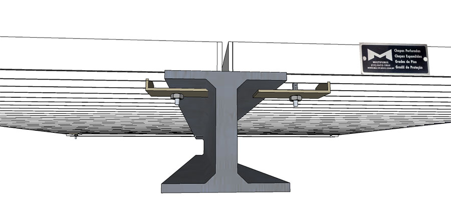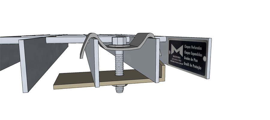 O modelo de Grampo de Fixação Tipo 2 é utilizado em grades que a viga de apoio não permite o envolvimento do grampo.