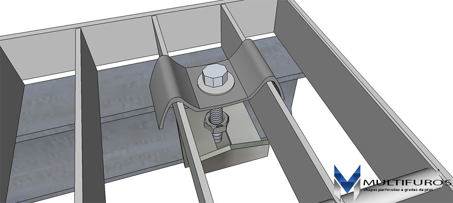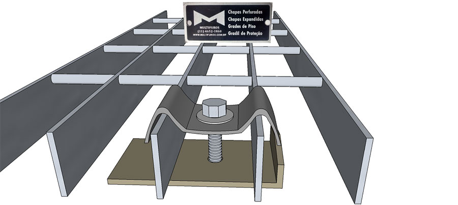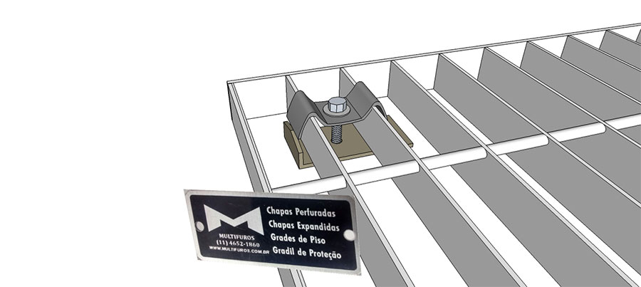 Os Grampos de Fixação são utilizados em grades de piso, sendo 4 peças por m², vão maiores recomenda-se 6 peças.